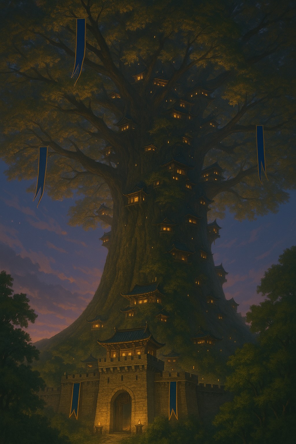 The capital of Feng is called the Origin Tree 元樹, a tree many thousands of metres tall, situated at the centre of the realm. At the centre of the tree is Phoenix Palace 鳳皇宮, the seat of the Fengyuan Realm’s “Phoenix King”.